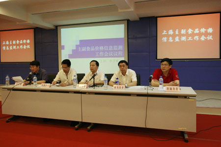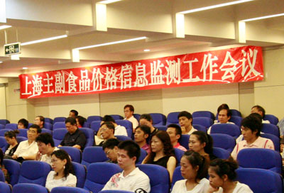 7月28日,市商务委会同市发改委物价局、市粮食局等部门在农产品中心批发市场召开上海主副食品价格信息监测工作会议,包括大型批发市场、标准化菜市场、生猪屠宰场、超市等有关主副食品数据采集单位近80人参加会议。有关部门分析今年以来主副食品价格情况及原因,预测下半年主副食品价格变动的趋势,提出落实市场供应保障的有关工作措施,并对先进单位进行表彰。会上,上海农产品中心批发市场、爱森食品公司、万有全半淞园菜市场、市商情信息中心等单位就如何做好信息收集和服务工作做了交流。